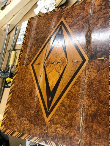 This is one of those "labors of love" I felt was worth posting here. I hope you don't mind, and (honestly) hope you enjoy it. This mirror fell from my client's wall. Amazingly, the glass did not break. It is, after all, 3/8" thick glass -- without a straight line to any of the narrow pieces.